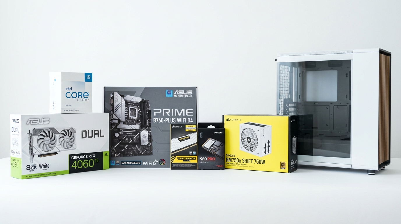この予算帯ではRTX 4060 Ti + Core i5-13400F + 32GB + 1TB SSD、またはRTX 4070 + Core i7-13700F + 16GBの構成が選択肢に入ります。