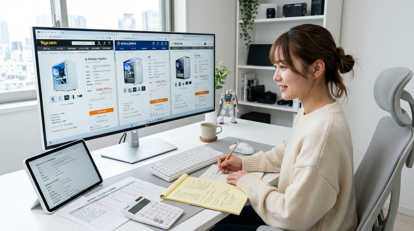 - 構成が決まったら、複数のメーカーサイトで同スペックの価格を比較してみる