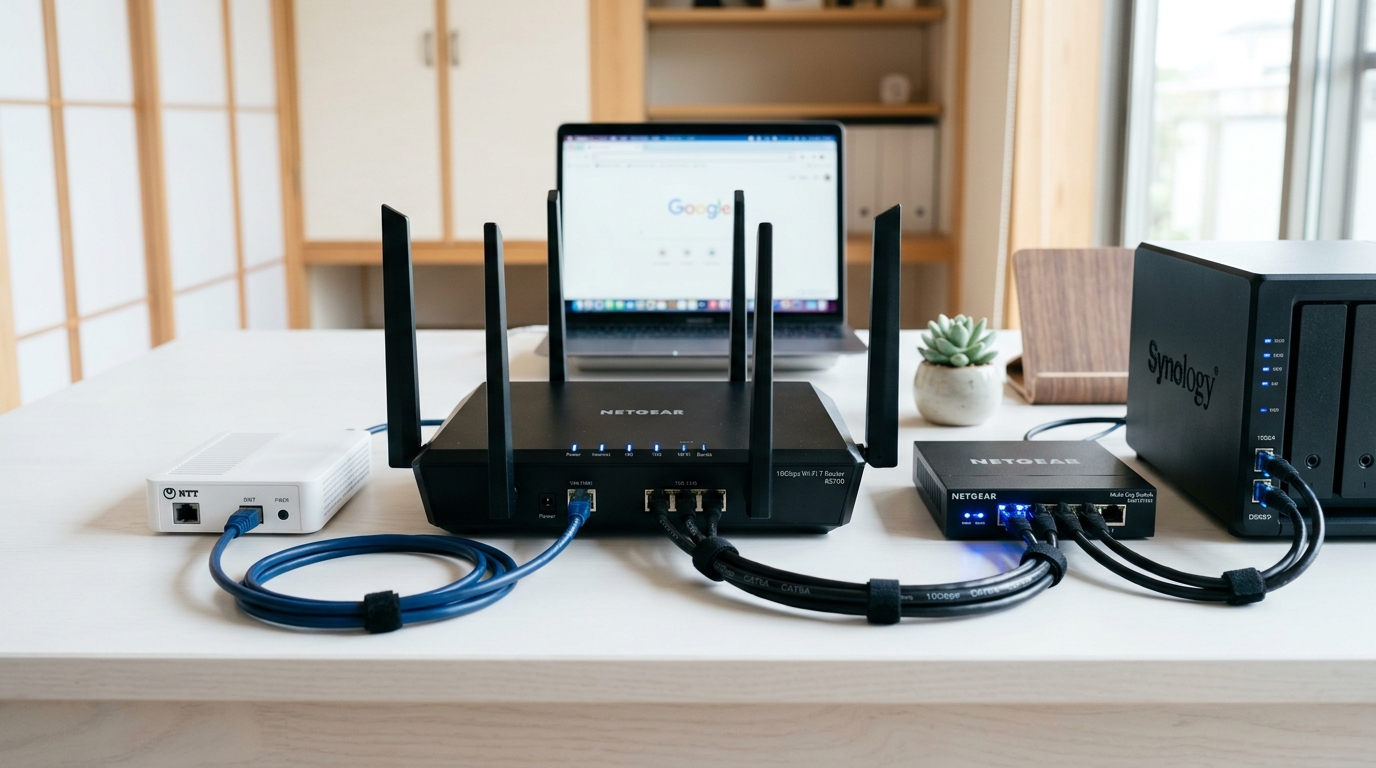必要な機器:10Gbps対応ルーター(1.5〜5万円)・Cat6A以上のLANケーブルが必要。